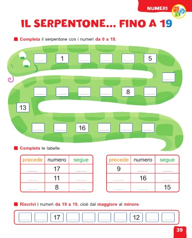 Riscrivi i numeri da 19 a 10, cioè dal maggiore al minore.