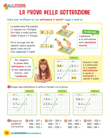 1 Esegui ogni sottrazione e verifica il risultato con la prova.