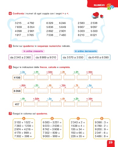 4 Confronta i numeri di ogni coppia con i segni > o <.