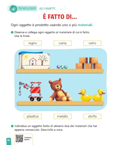Osserva e collega ogni oggetto al materiale di cui è fatto.