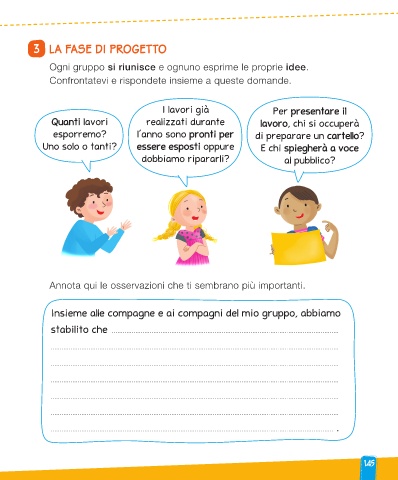 Ogni gruppo si riunisce e ognuno esprime le proprie idee.