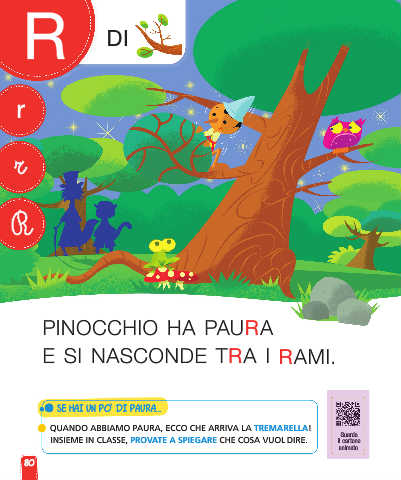 R DI r r r R R PINOCCHIO HA PAURA E SI NASCONDE TRA I RAMI. SE HAI UN PO DI PAURA... QUANDO ABBIAMO PAURA, ECCO CHE ARRIVA LA TREMARELLA! Guarda INSIEME IN CLASSE, PROVATE A SPIEGARE CHE COSA VUOL DIRE. il cartone animato. 80