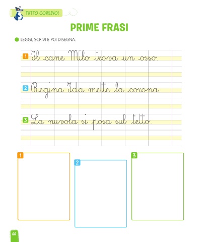 TUTTO CORSIVO! PRIME FRASI LEGGI, SCRIVI E POI DISEGNA. 1 1 <cane ø < rova <un <øßsø. <e na < a me e a <cø®ona. 2 2 3 3 a nuvø a s < øßa su < e ø. 1 1 3 3 2 2 66