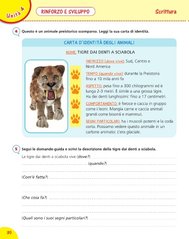 5 Segui le domande-guida e scrivi la descrizione della tigre dai denti a sciabola.