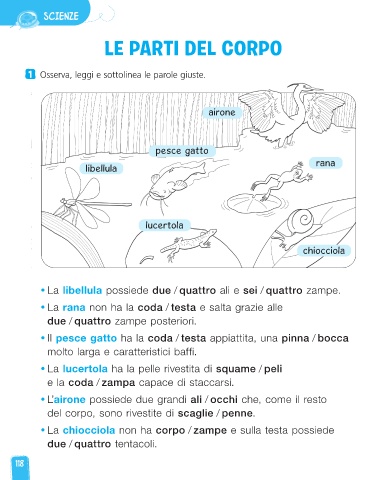 • La libellula possiede due / quattro ali e sei / quattro zampe.