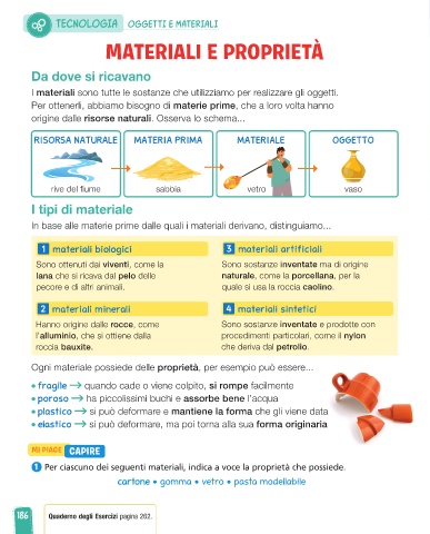 1 Per ciascuno dei seguenti materiali, indica a voce la proprietà che possiede.