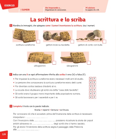 1 Riordina le immagini, che spiegano come i Sumeri inventarono la scrittura. Usa i numeri.