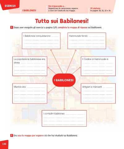 1 Dopo aver eseguito gli esercizi a pagina 129, completa la mappa di ripasso sui Babilonesi.