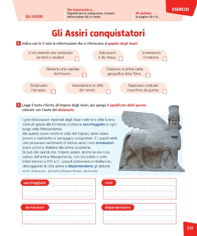 GLI ASSIRI informazioni da un testo. le pagine 40 e 41.
