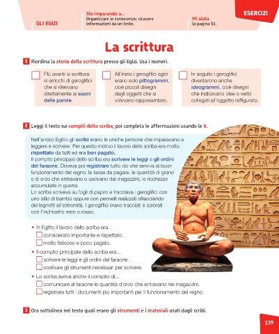 2 Leggi il testo sui compiti dello scriba, poi completa le affermazioni usando le X.