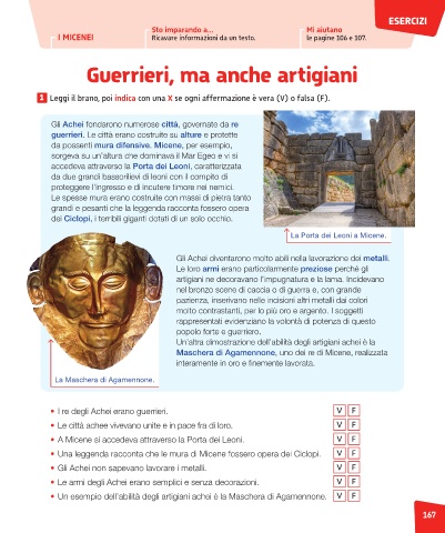 I MICENEI Ricavare informazioni da un testo. le pagine 106 e 107.