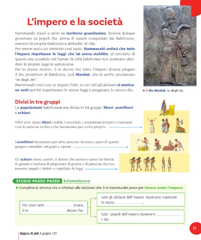 Completa lo schema che si riferisce alle decisioni che il re Hammurabi prese per tenere unito l’impero.