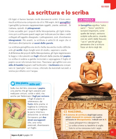 Gli Egizi ci hanno lasciato molti documenti scritti. Il loro siste- LA PAROLA