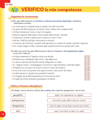 2 Indica con una X se ogni affermazione riferita al faraone e alla popolazione egizia