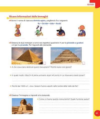 4 Scrivi il nome di ciascuna divinità egizia, scegliendo fra i seguenti.