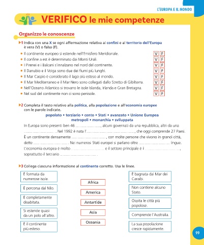 1 Indica con una X se ogni affermazione relativa ai confini e al territorio dell’Europa