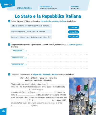 1 Collega ciascuna definizione al relativo elemento che costituisce lo Stato. Usa le linee.