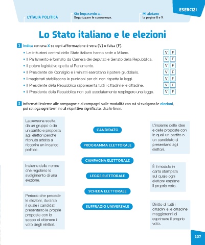 L’ITALIA POLITICA Organizzare le conoscenze. le pagine 8 e 9.