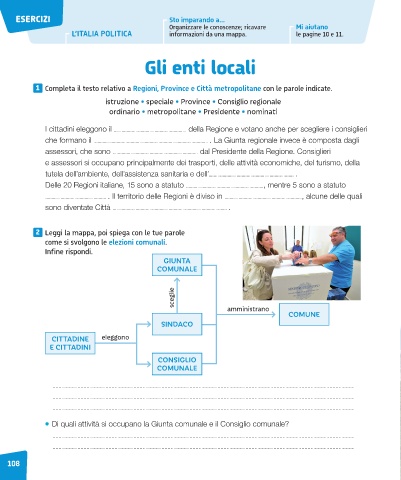 1 Completa il testo relativo a Regioni, Province e Città metropolitane con le parole indicate.