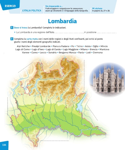 1 Dove si trova la Lombardia? Completa le indicazioni.