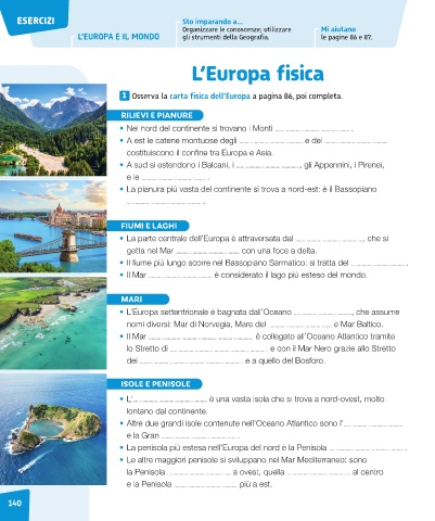 1 Osserva la carta fisica dell’Europa a pagina 86, poi completa.
