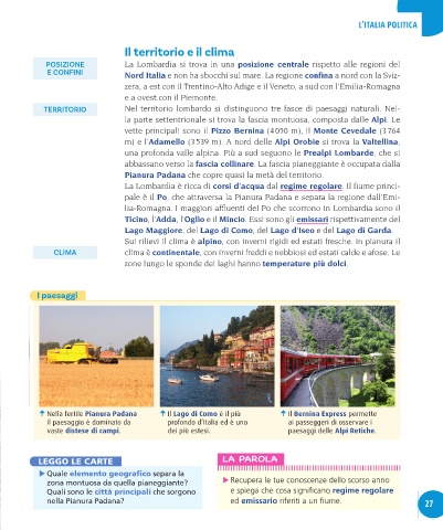 E CONFINI Nord Italia e non ha sbocchi sul mare. La regione confina a nord con la Sviz-