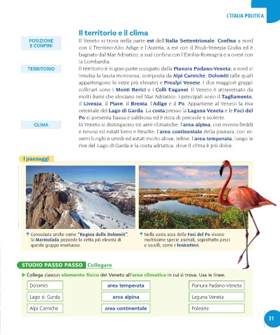 Collega ciascun elemento fisico del Veneto all’area climatica in cui si trova. Usa le linee.