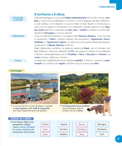 POSIZIONE L’Emilia-Romagna si trova nell’Italia Settentrionale ed è molto estesa. Con-