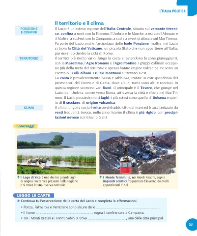 Continua tu l’osservazione della carta del Lazio e completa le affermazioni.