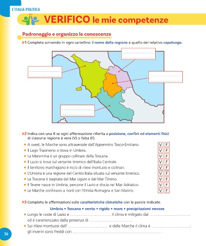 1 Completa scrivendo in ogni cartellino il nome della regione e quello del relativo capoluogo.