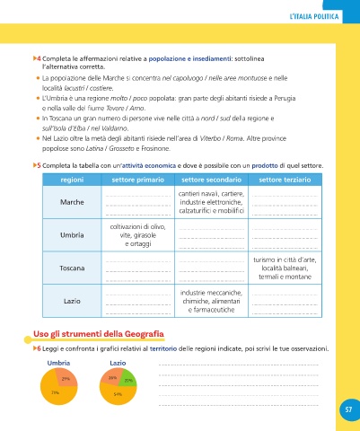 4 Completa le affermazioni relative a popolazione e insediamenti: sottolinea
