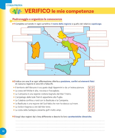 1 Completa scrivendo in ogni cartellino il nome della regione e quello del relativo capoluogo.