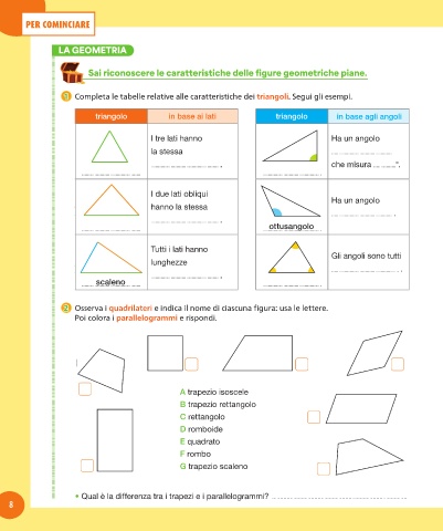 2 2 Osserva i quadrilateri e indica il nome di ciascuna figura: usa le lettere.
