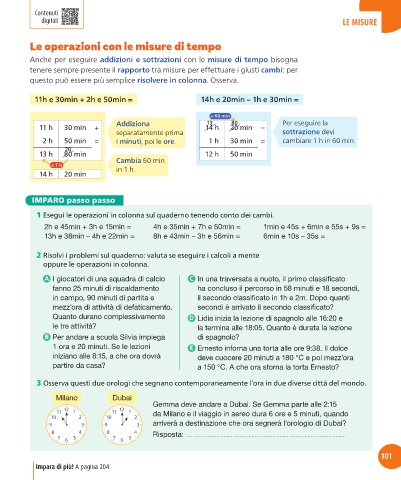 Anche per eseguire addizioni e sottrazioni con le misure di tempo bisogna