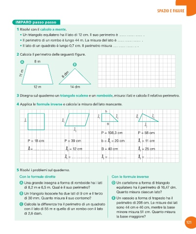 3 Disegna sul quaderno un triangolo scaleno e un romboide, misura i lati e calcola il relativo perimetro.