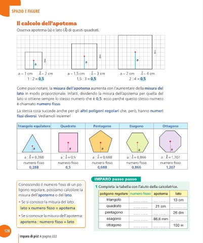 lato in modo proporzionale. Infatti, dividendo la misura dell’apotema per quella del