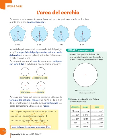del cerchio e la misura del perimetro si avvicina a quel- 1 Colora la superficie del cerchio,