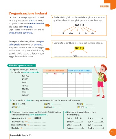 sono organizzate in classi: tu cono- quella delle unità semplici, poi scomponi il numero.
