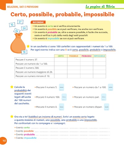 Per ogni evento indica con una X se è certo, possibile, probabile o impossibile.