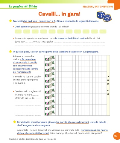 Dividetevi in piccoli gruppi e giocate tre partite alla corsa dei cavalli: usate le tabelle