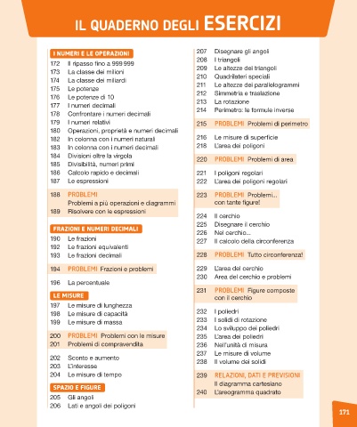 182 In colonna con i numeri naturali 216 Le misure di superficie