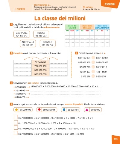 I NUMERI naturali fino alla classe dei milioni. le pagine 14, 15 e 16.