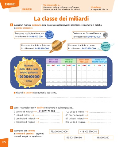 I NUMERI i numeri naturali fino alla classe dei miliardi. le pagine 14, 15 e 16.