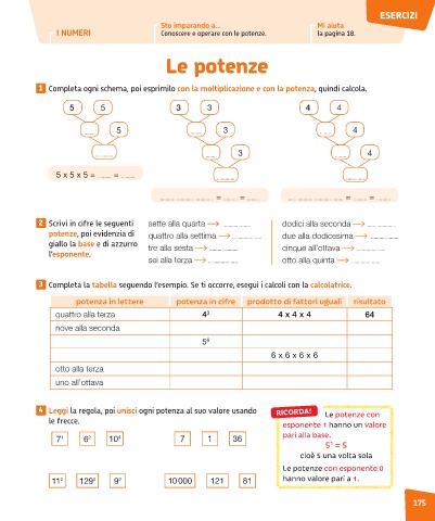 4 Leggi la regola, poi unisci ogni potenza al suo valore usando RICORDA!