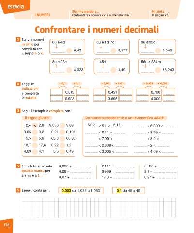 I NUMERI Confrontare e operare con i numeri decimali. la pagina 22.