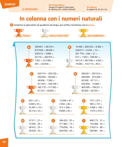 LE OPERAZIONI in colonna con i numeri naturali. le pagine 32, 33, 34 e 36.