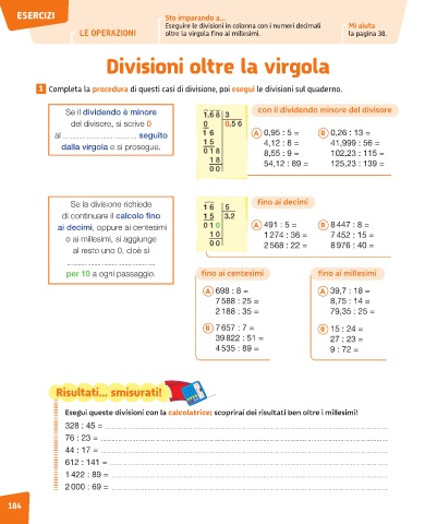 LE OPERAZIONI oltre la virgola fino ai millesimi. la pagina 38.