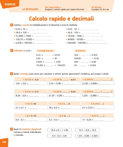 LE OPERAZIONI Eseguire il calcolo rapido con i numeri decimali. le pagine 35, 36 e 46.