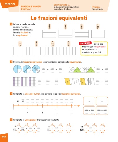 2 Osserva le frazioni equivalenti rappresentate e completa le uguaglianze.