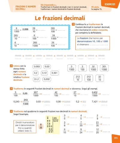DECIMALI trasformare i numeri decimali in frazioni decimali. la pagina 71.